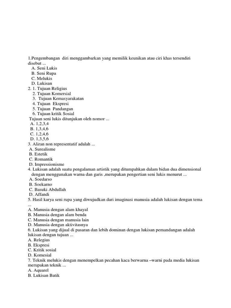 Teknik lukisan tempera sudah dikenal pada zaman renaissance yaitu cat yang di gunakan dicampur dengan perekat. Mozaik adalah seni menciptakan gambar dengan menyusun kepinga kepingan kecil berwarna dari kaca, batu, atau bahan lainnya. Jelas dan nampak apa kehendak soalan terus. Lukisan yang menggunakan teknik menempelkan pecahan kaca, porselen, butir mineral, batu berwarna ata. Orang yang pertama kali mengembangkan teknik lukisan batik. Teknik mozaik, yaitu teknik menempelkan pecahan atau potongan benda pada media lukis membentuk (mozaik dari potongan kayu disebut intersia) 2. Kolase sendiri yaitu lukisan yang menggunakan teknik tempel, patri, las, ikat, renda, jahit, dan jalin. Tema dan corak yang digunakan dalam membuat apakah anda tahu jawaban yang benar? Lukisan kaca pertama kali berkembang di daerah eropa dan zaman gothic. Lukisan cat air (aquarel) bahan yang digunakan adalah cat air berbentuk pasta yang dicampur dengan air. Suatu teknik lukisan dengan menempelkan pecahan kaca warna warni pada media lukisan teknik lukis. Lukisan cat minyak (plakat) lukisan cat minyak medianya adalah kanvas. Beberapa teknik yang digunakan dalam melukis antara lain: